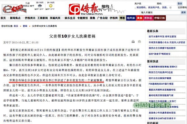至此,@心路独舞基本肯定,“单身父亲为女儿洗澡而惹命案”的事情是不存在的,至于是不是因时间太久导致纽约这位李姓家庭协调员记错了、或者《侨报》记者听错了、抑或是当年轰动全美的曹显庆旧案被以讹传讹了,她无从判断,但可以肯定的是,这是一个被虚构出来的新闻热点。